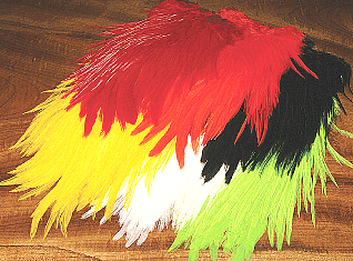 Colors Available: Dyed over White: Natural, Olive, Orange, Red, Pink, Purple, Fl. Green Chartreuse, Kingfisher Blue Dyed over Badger: Dark Olive, Fl. Yellow Chartreuse, Orange, Red, Pink, Yellow, Fl. Green Chartreuse, Silver Doctor Blue, Kingfisher Blue.